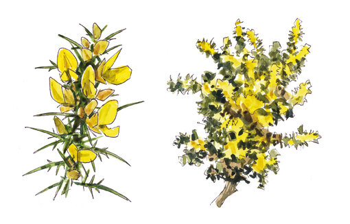 On trouve en Sologne l’ajonc nain (Ulex minor) mesurant de 50 à 70 cm et l’ajonc d’Europe (Ulex europaeus) de 1 à 2 mètres. C’est une plantes épineuses aux jeunes tiges poilues. Les fleurs sont jaunes avec 2 petites bractées sous le calice. |